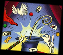 Zauberspielen und Zaubergeschichten kombiniert. Sodass zu geringen Kosten