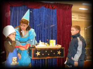 "Laternen Zauber" (Thema St. Martin) Mit ihrer magischen Laterne verwandelt ich als liebe Zauberhexe "Magica Natalià" alltägliche Gegenstände in verblüffende Zauber-Kunststücke. Dabei lasse ich für die Kinder Weckmänner erscheinen und stelle mit "Johanna" eine hellsehende (Martins-) Gans vor.