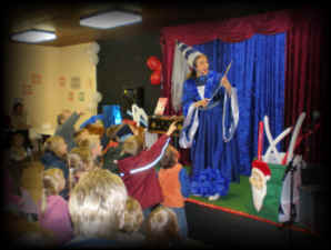 Zauber-Clownin zeige ich den Kindern, wie man mit Feuer, Wasser und Licht zaubern